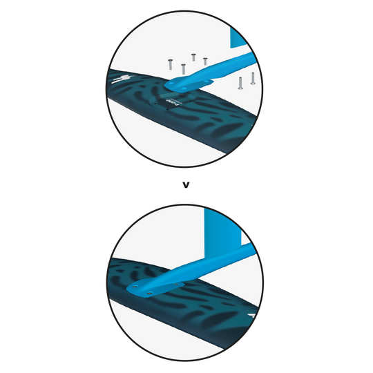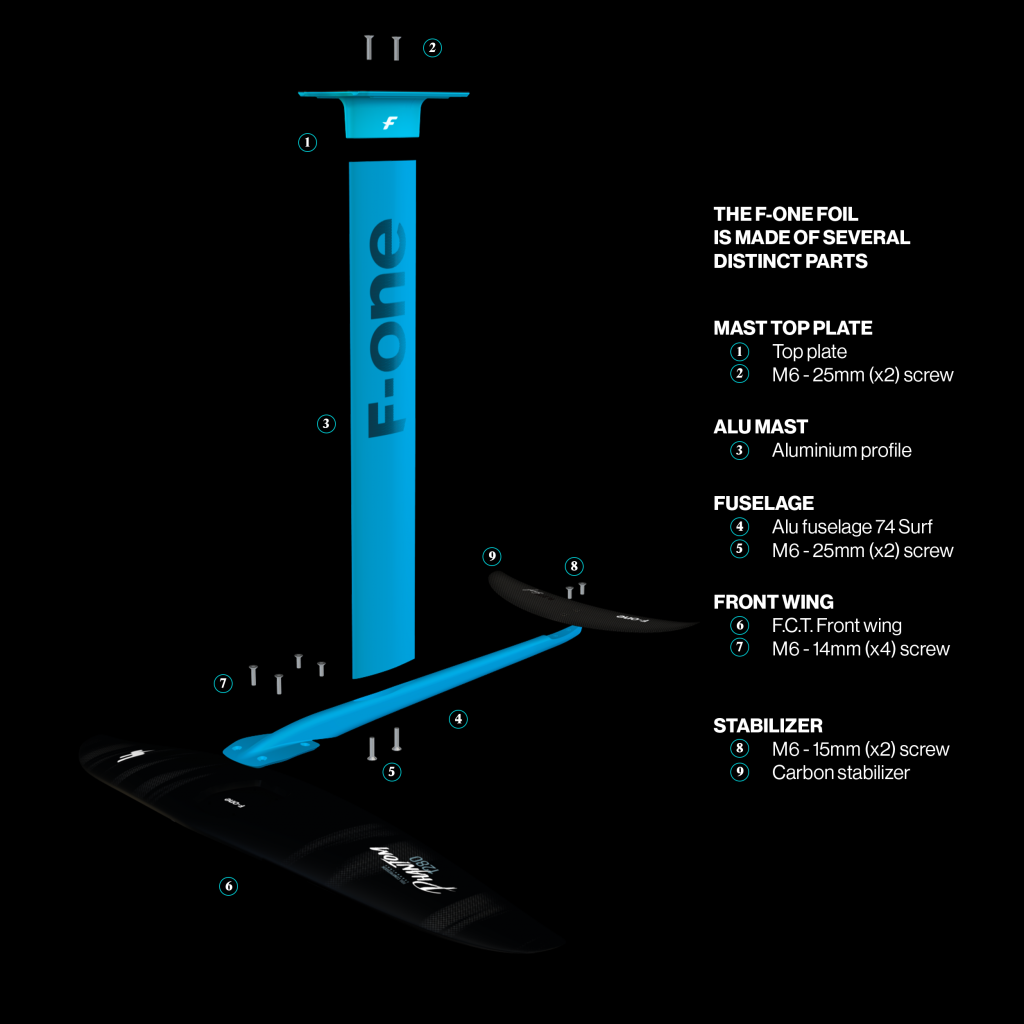 The fuselage can be directly connected to the F-ONE aluminium mast of the desired length. The setup and disassembly are also extremely easy, and the whole is very travel friendly.