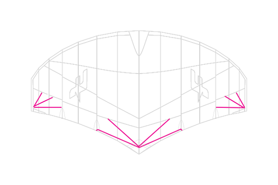 Small radial cuts are implemented on the wingtips and on the back of the strut to spread tensions. Aligning the fibre exactly along the load paths means that stretch can be controlled to a never-before-seen level on a wing. Located on the back of the strut, our Load Diffuser made of overlapping panels of hard Mylar and Dacron further helps maintaining the profile sleek and efficient, leading to the ultimate stability, performances, and longevity.