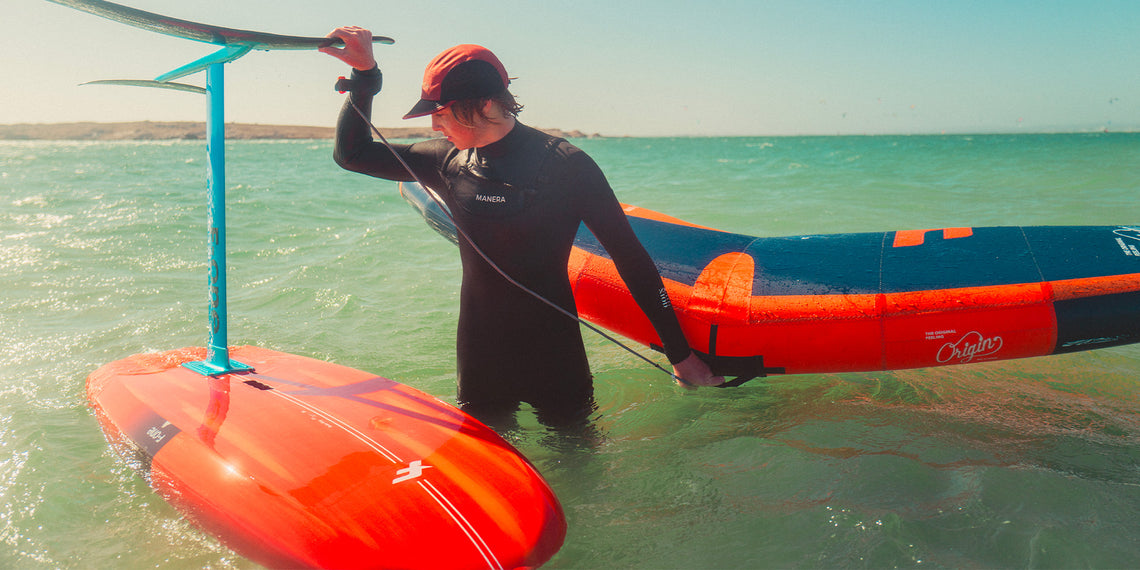 The 5’0, 5’3, and 5’5 are truly the all-purpose sizes. They are a great fit for riders with an intermediate level, or for wing foil beginners who already have some knowledge and training in other foil disciplines. Their maneuverability and carving potential are fantastic. Pumping is easy even in light conditions, and they grant the riders a lot of room for improvement. They are equipped with a full pad, a bottom handle to easily carry your board to and from the water, inserts for three footstraps, and the Twin-Tracks system for foil compatibility.