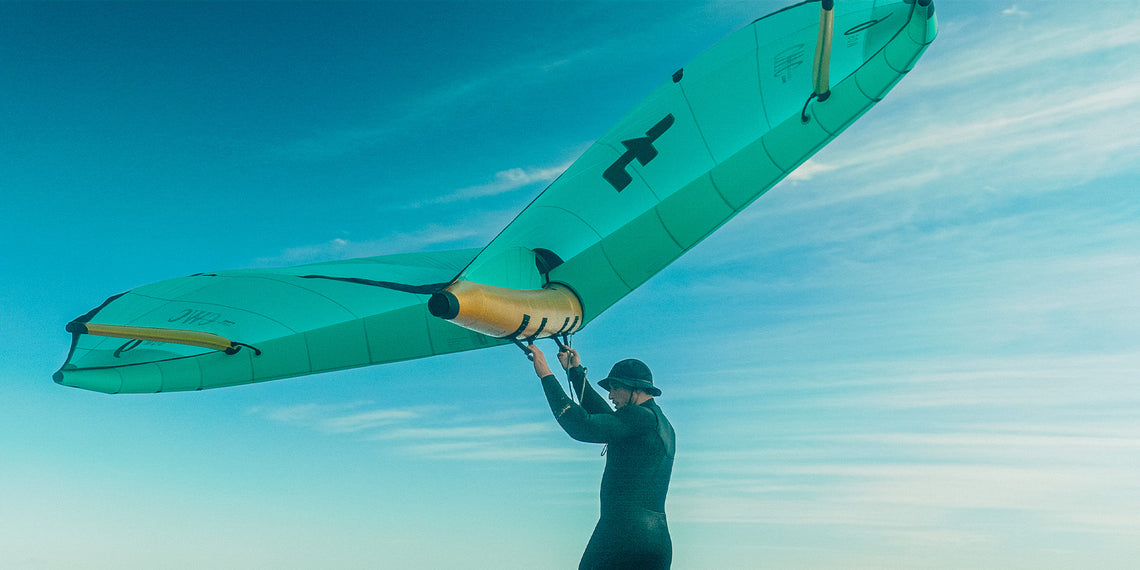 We’ve also added dihedral angle to improve stability and keep the wingtips out of the water when pumping and riding. The new leading and trailing edge tensions help keep the profile smooth and stable for incredible performance and control.