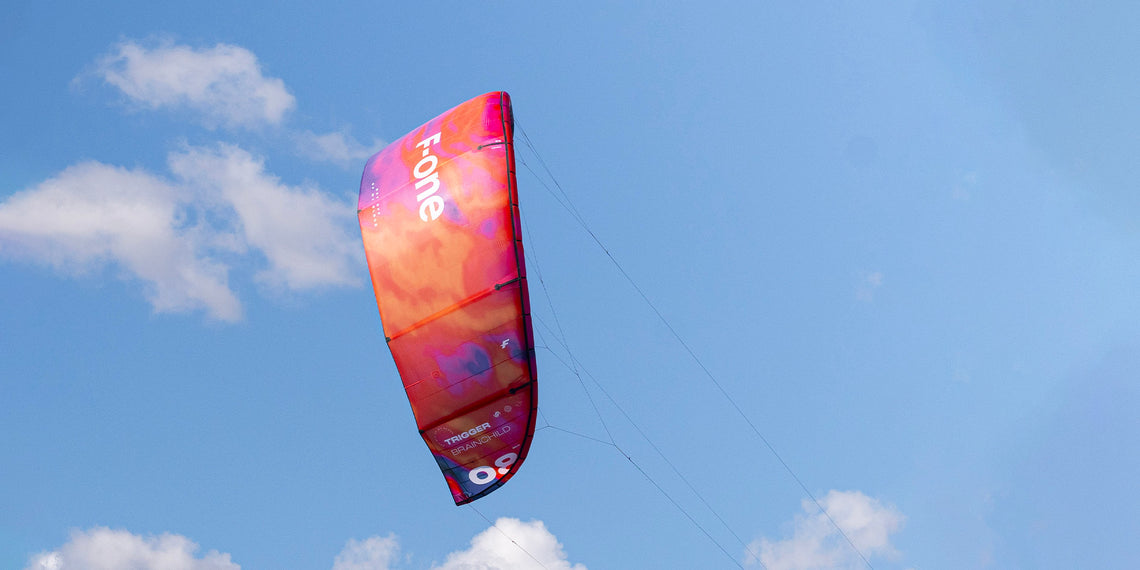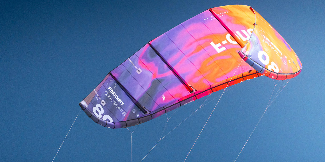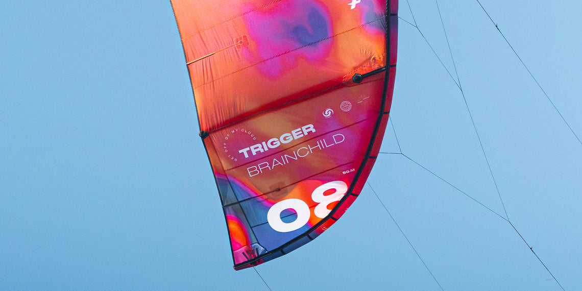 The TRIGGER by Brainchild features a new and exclusive panel layout concept, where the panels on the wingtip areas are all joint together into one panel, as well as the main panel between the tip and the S2 strut. This new panel design enhances the aerodynamic behavior of the kite, as well as reduces the amount of seams, therefore decreasing the weight even further.